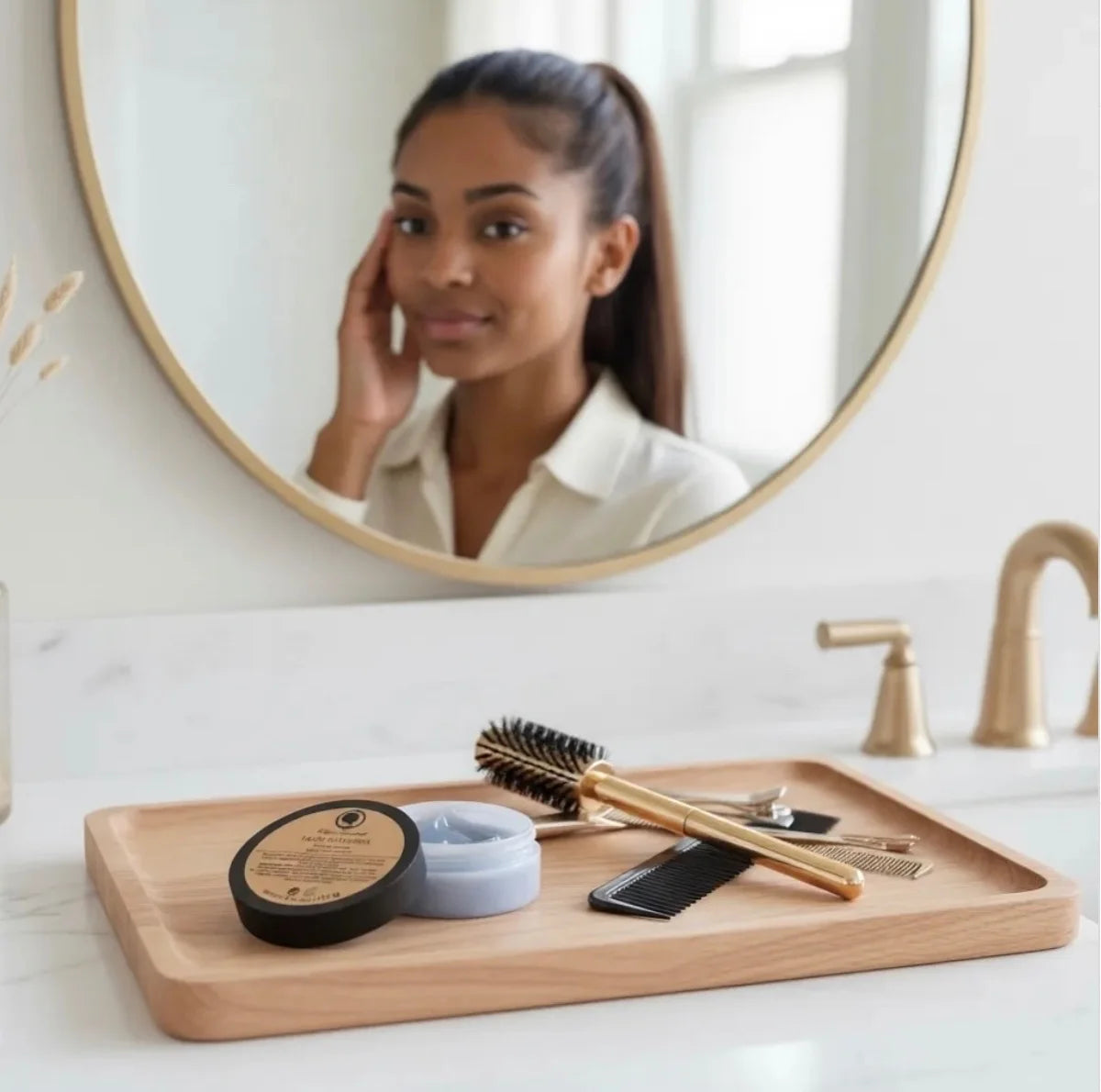 Apply a small amount to clean, moisturized edges. Use your fingertip or a soft edge brush to gently smooth hair into place.
